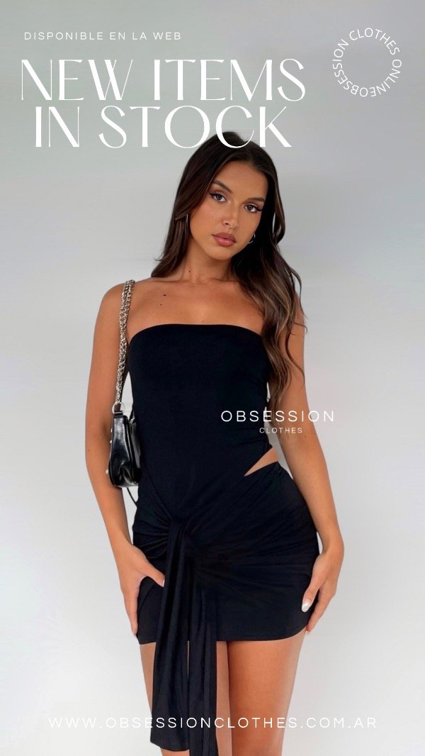 Vestido strapless de microfibra liviana, con detalle de lazo y nudo en delantero. Pollera fruncida por laterales. Con vista en busto.